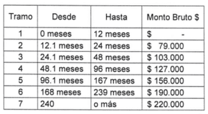 – Pago en enero de 2025: $100.000, más el Bono de antigüedad (ver tabla adjunta).